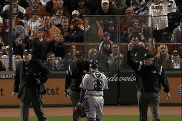 As umpires reviewed the play, Molina stood on first base—until he didn't. Emmanuel Burriss replaced Molina as a pinch-runner before umpires called it a home run and finished his teammate's home run trot. (The decision caused a lot more trouble than you’d think.)